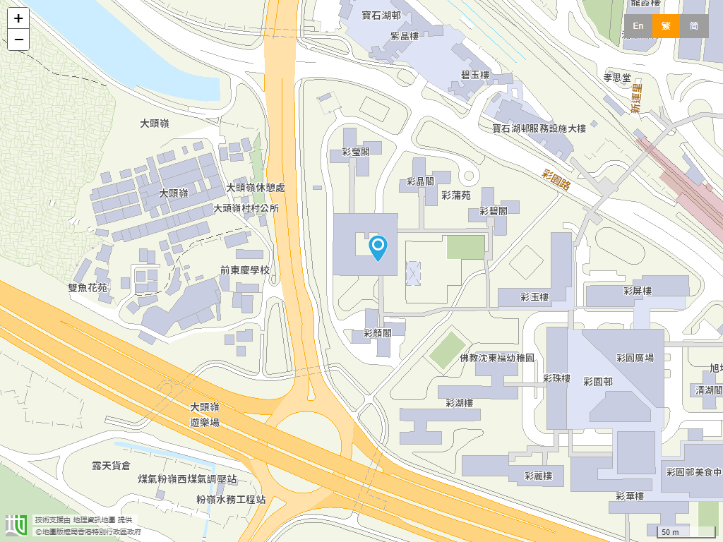學校位置:北區 › 新界上水彩蒲苑停車場大廈地下。學校地圖。