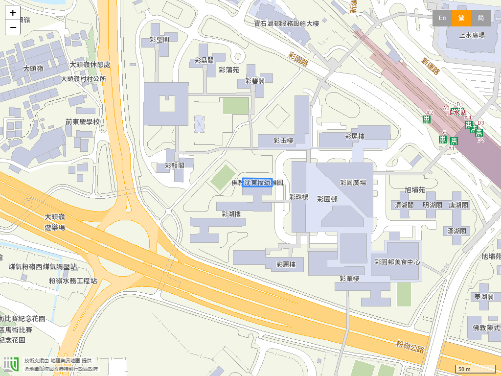 學校位置:北區 › 新界上水彩園邨彩湖樓地下。學校地圖。