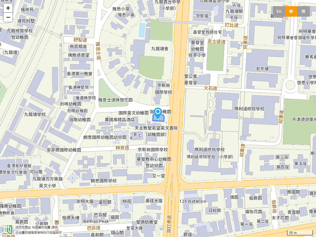 學校位置:九龍城區 › 九龍九龍塘窩打老道111號。學校地圖。
