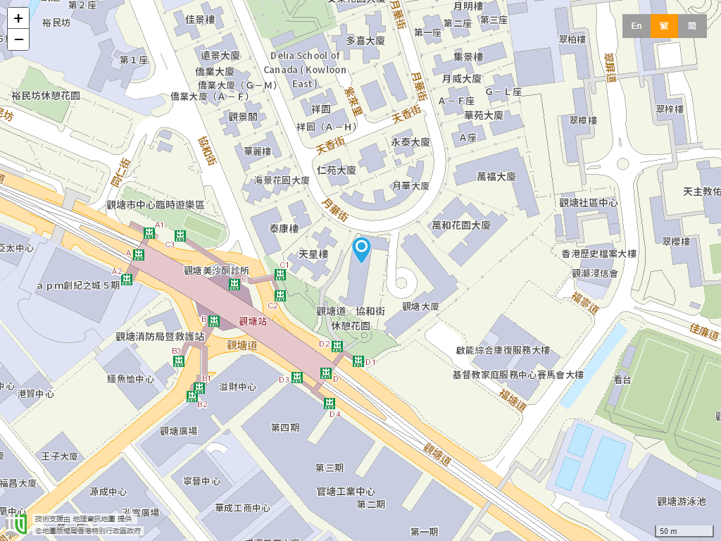 學校位置:觀塘區 › 九龍觀塘月華街34號地下下層,3樓,4樓及5樓。學校地圖。