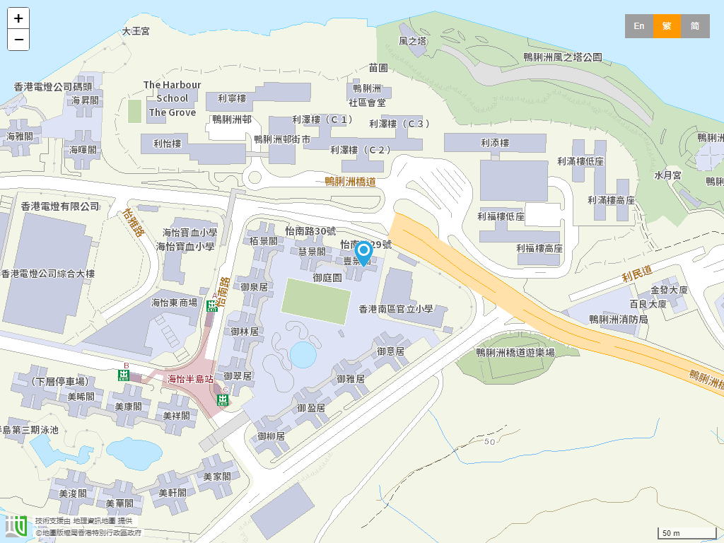 學校位置:南區 › 香港鴨脷洲怡南路海怡半島第4期29座高層地面。學校地圖。