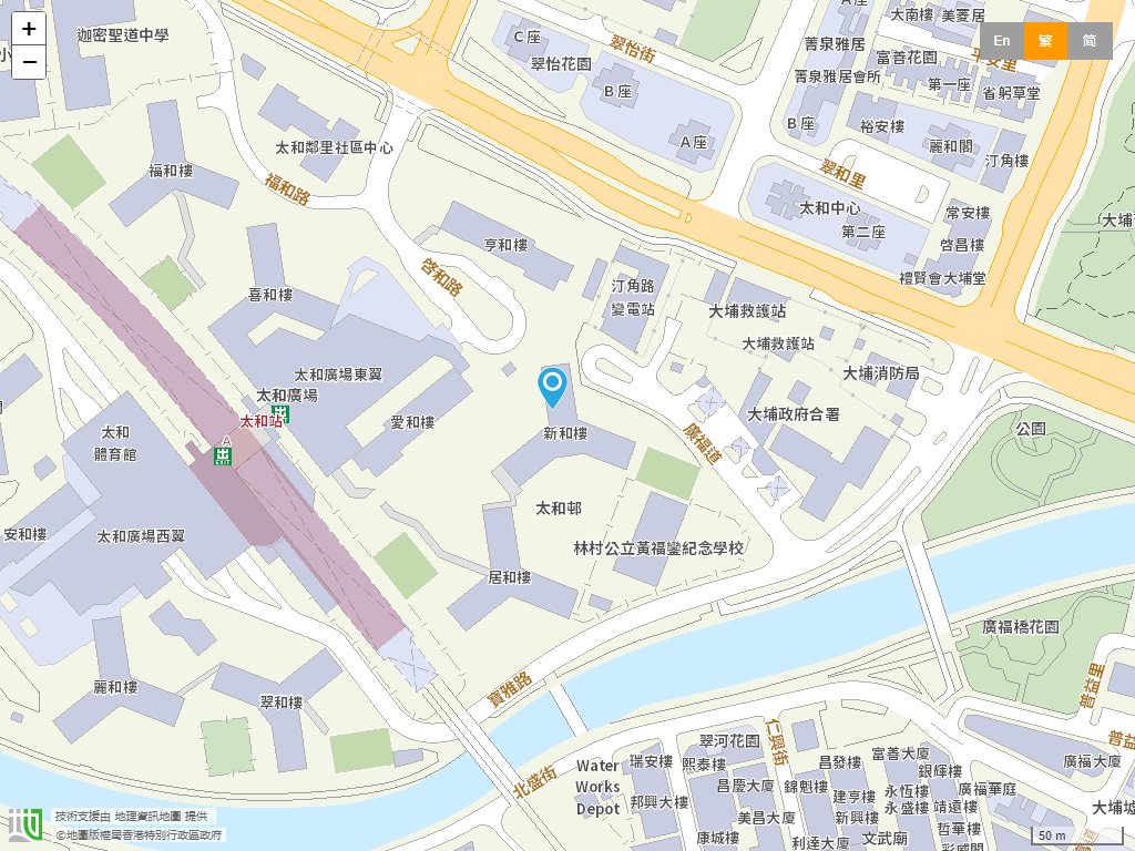 學校位置:大埔區 › 新界大埔太和邨新和樓地下。學校地圖。