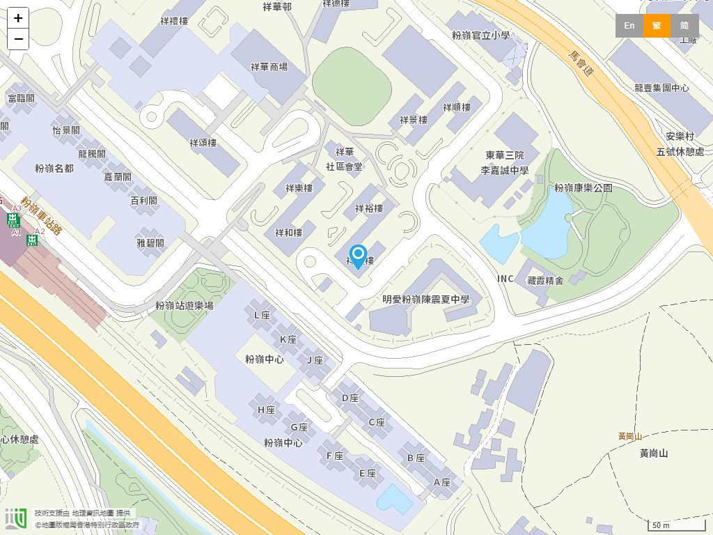 學校位置:北區 › 新界粉嶺祥華邨祥豐樓地下101-108室及113-115室。學校地圖。