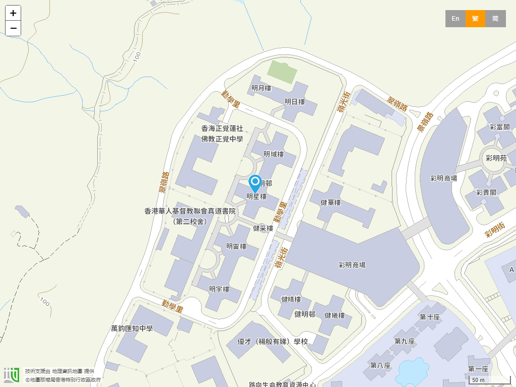 學校位置:西貢區 › 新界將軍澳健明邨明星樓B及C翼地下。學校地圖。