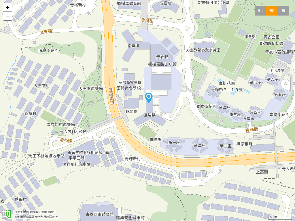 學校位置:葵青區 › 新界青衣青衣邨宜居樓A翼地下。學校地圖。