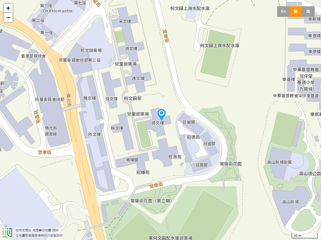 學校位置:九龍城區 › 九龍何文田南村第五座適文樓地下。學校地圖。