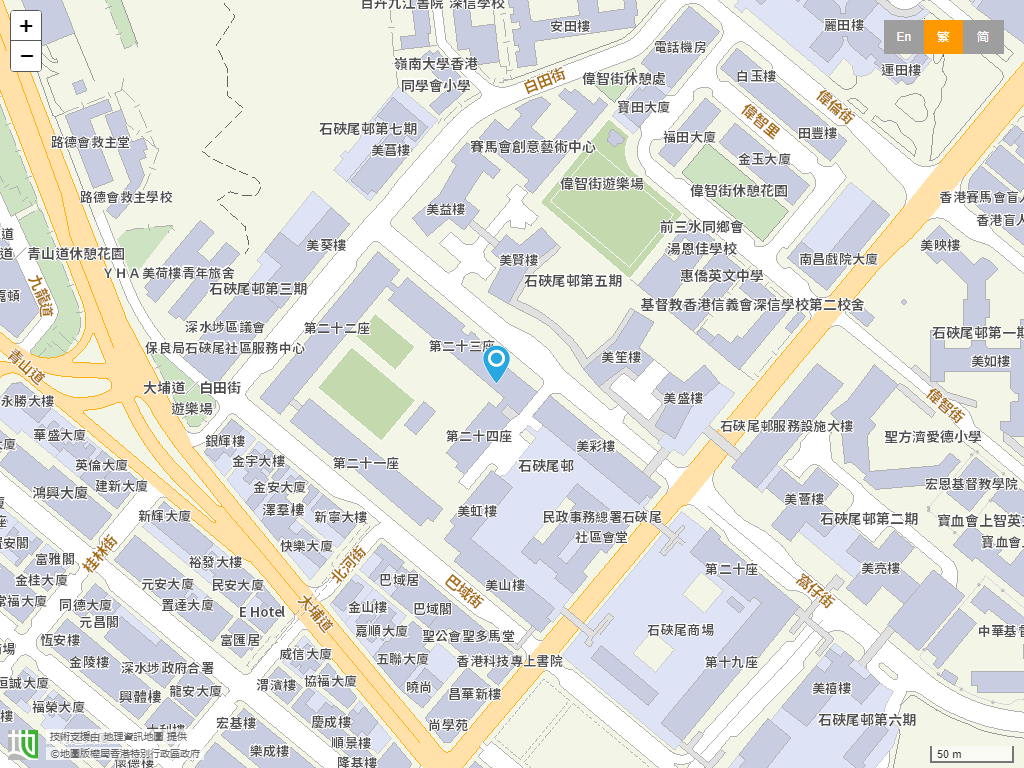 學校位置:深水埗區 › 九龍深水埗窩仔街石硤尾邨第23座1樓201-218號。學校地圖。