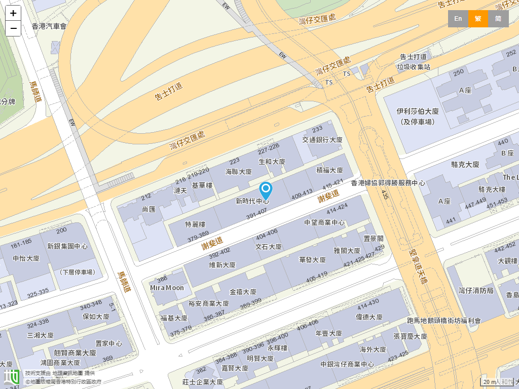 學校位置:灣仔區 › 香港灣仔謝斐道391-407號新時代中心地下B舖及1樓。學校地圖。
