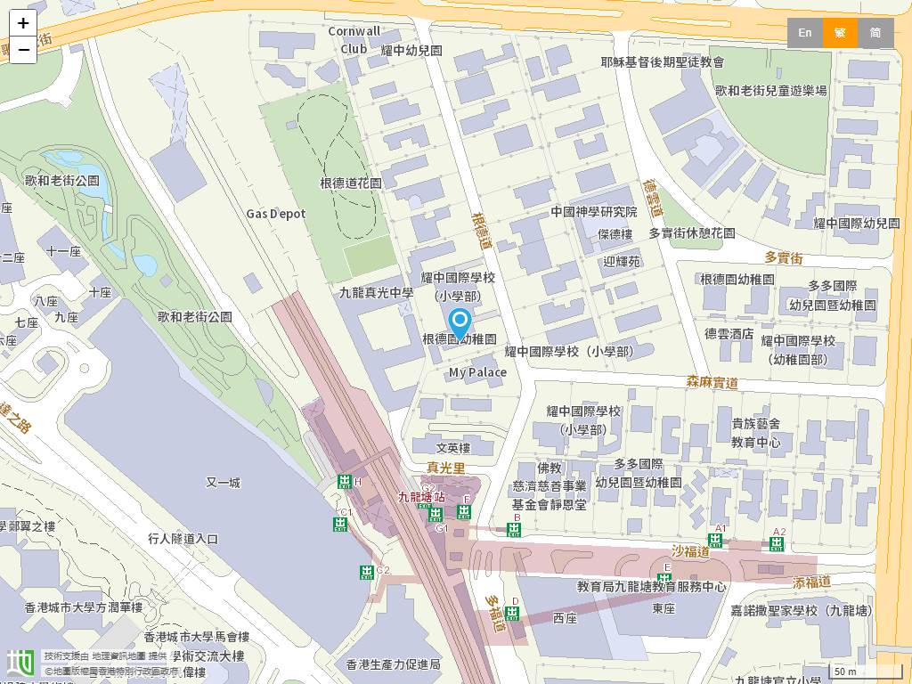 學校位置:九龍城區 › 九龍九龍塘根德道9號及多實街5-7號。學校地圖。