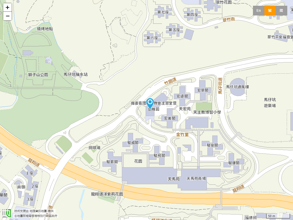 學校位置:黃大仙區 › 九龍馬仔坑天宏苑停車場大廈2樓。學校地圖。