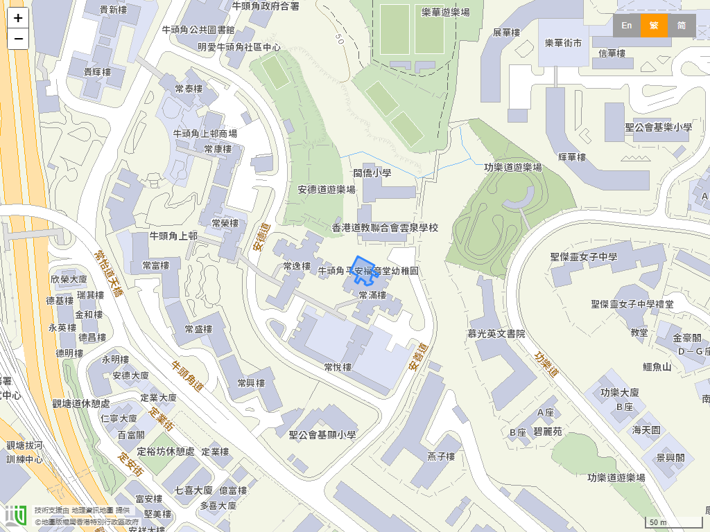 學校位置:觀塘區 › 九龍觀塘牛頭角上邨第一期常滿樓地下。學校地圖。