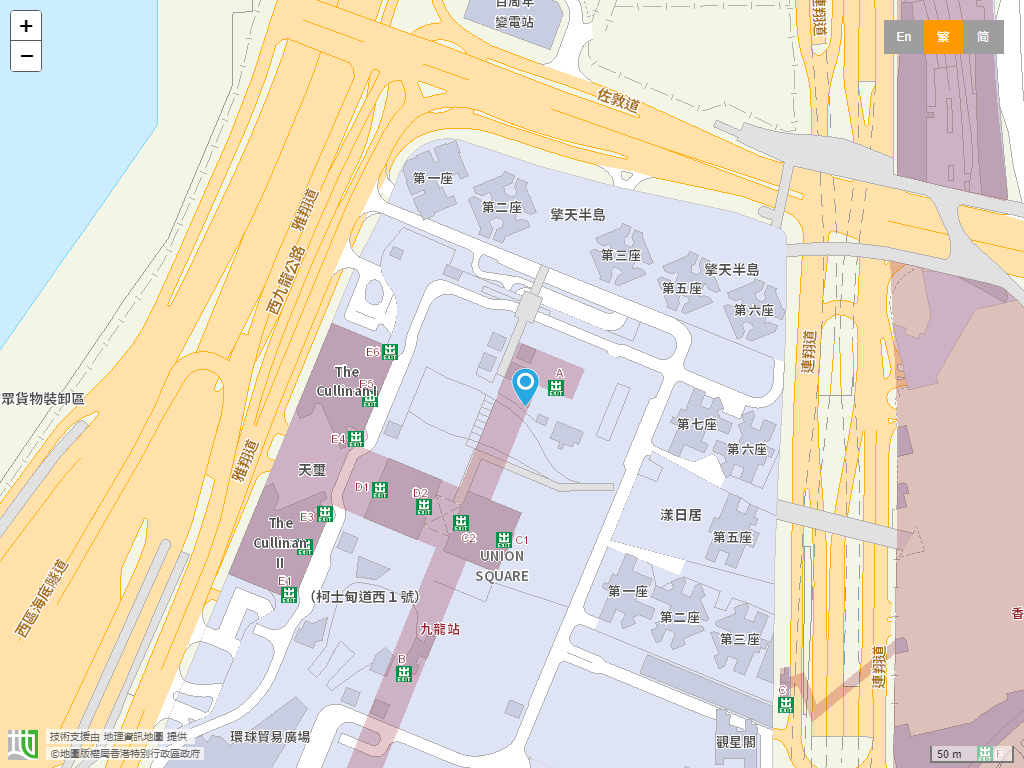 學校位置:油尖旺區 › 九龍柯士甸道西1號九龍站平台。學校地圖。