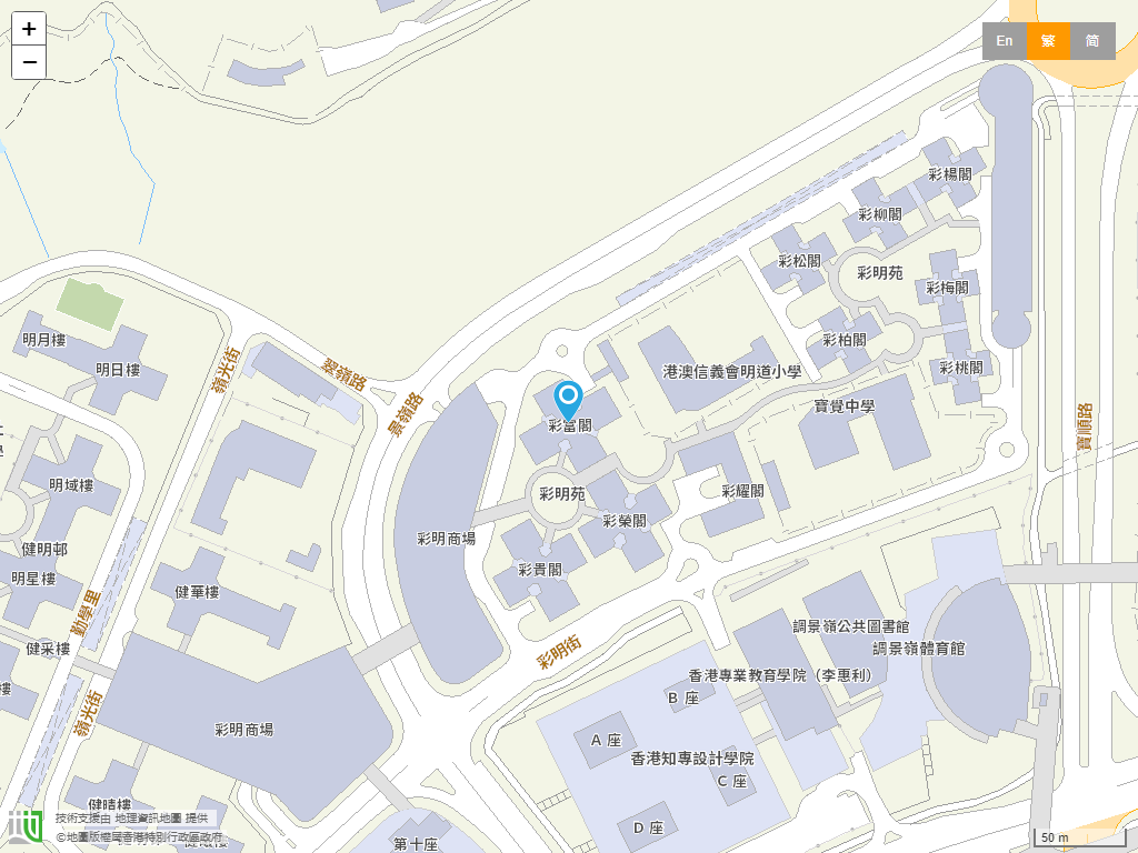 學校位置:西貢區 › 新界將軍澳彩明苑彩富閣B及C座地下。學校地圖。