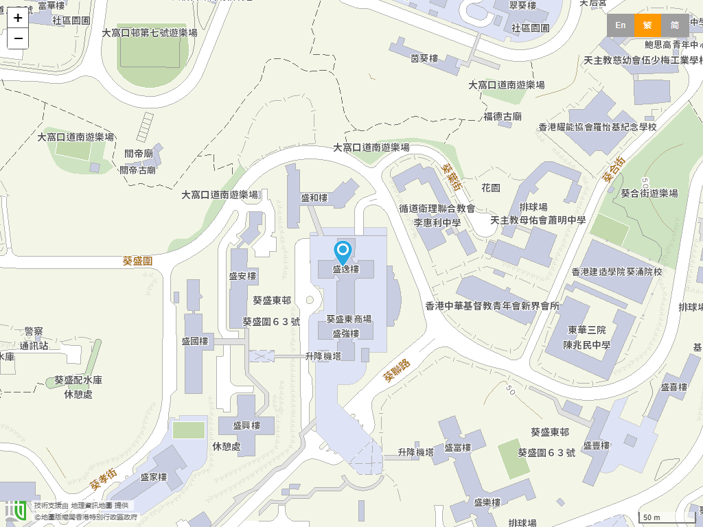 學校位置:葵青區 › 新界葵涌葵盛東邨盛逸樓平台B及C座。學校地圖。