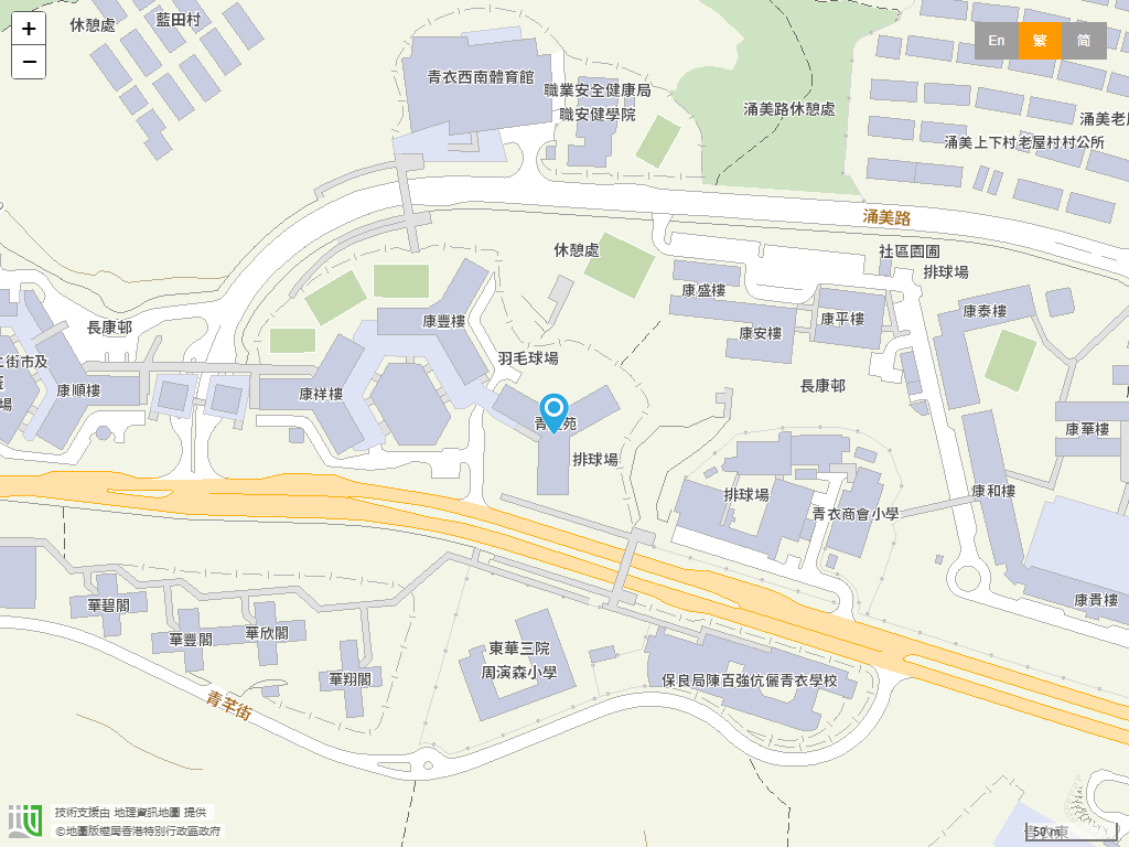 學校位置:葵青區 › 新界青衣島長康邨青盛苑O座地下第一層。學校地圖。