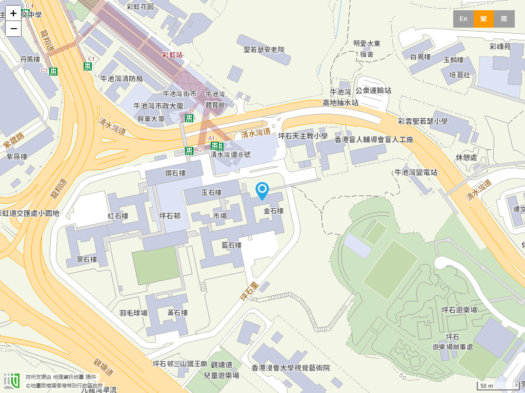 學校位置:觀塘區 › 九龍觀塘坪石邨金石樓。學校地圖。