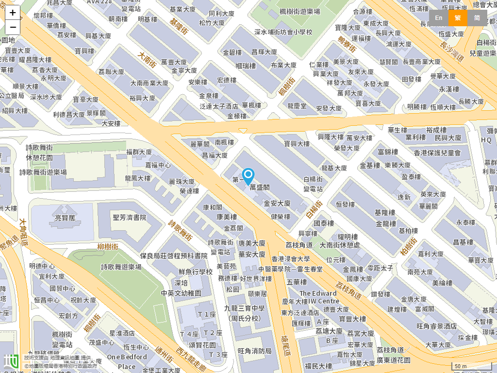 學校位置:油尖旺區 › 九龍荔枝角道150-174號1樓。學校地圖。
