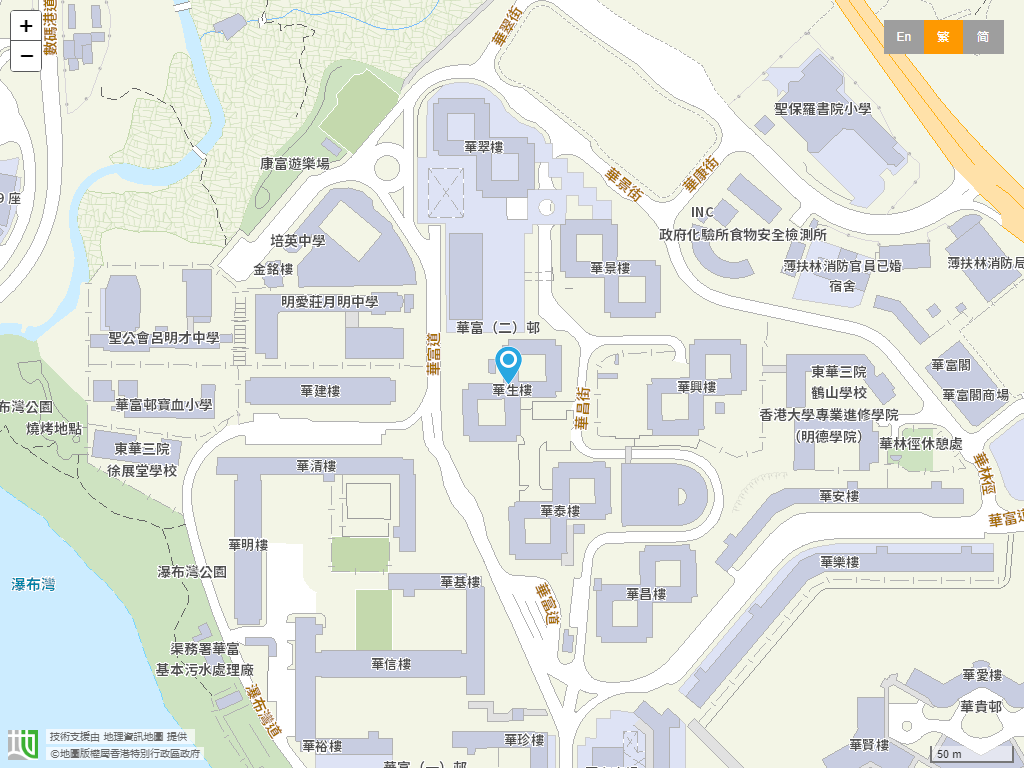 學校位置:南區 › 香港華富邨華生樓123-127及223-229室。學校地圖。