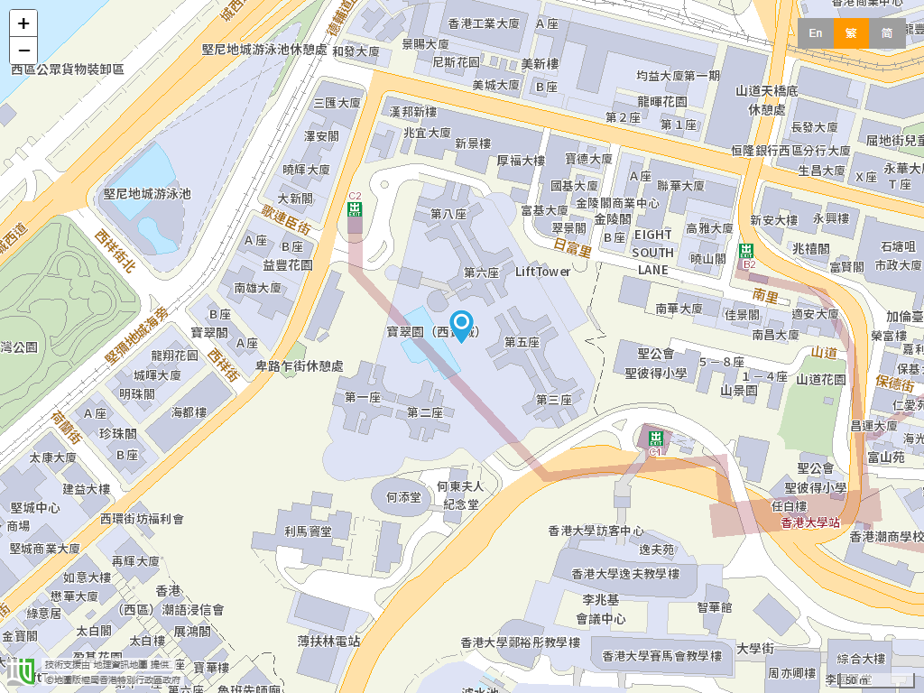 學校位置:中西區 › 香港西環卑路乍街8號西寶城商場2樓平台。學校地圖。