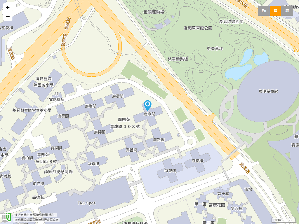 學校位置:西貢區 › 新界將軍澳廣明苑廣寧閣F座地下。學校地圖。