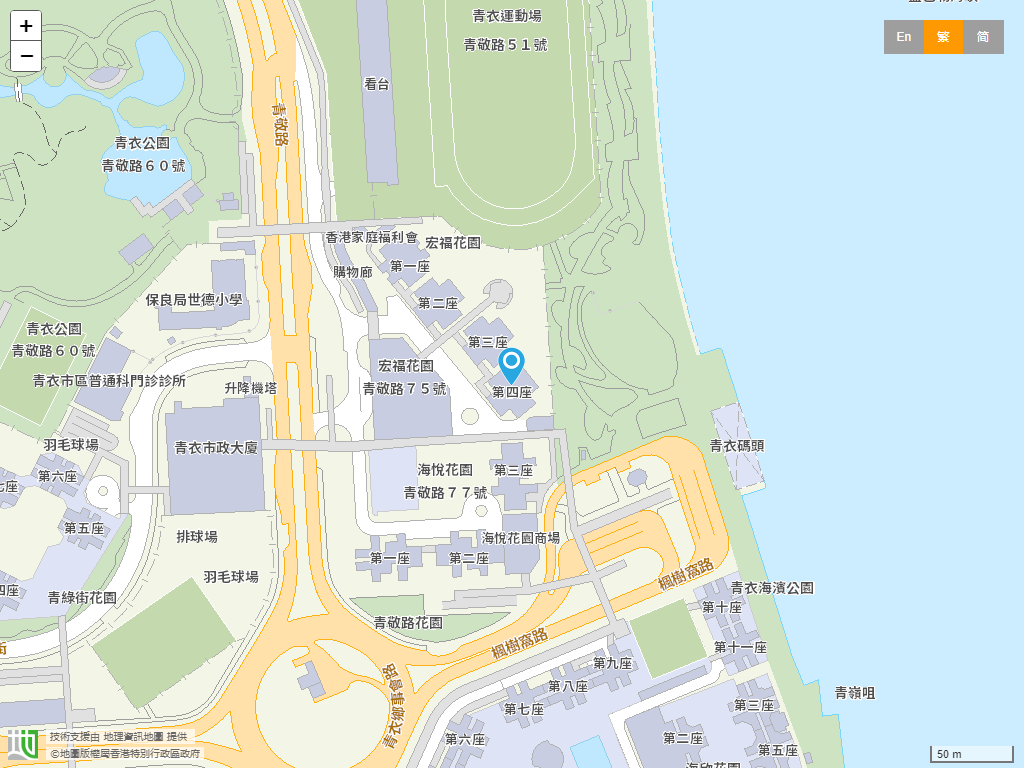 學校位置:葵青區 › 新界青衣青敬路75號宏福花園第四座地下。學校地圖。