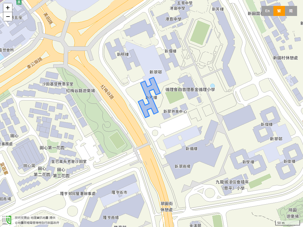 學校位置:沙田區 › 新界沙田新翠邨新月樓地下。學校地圖。