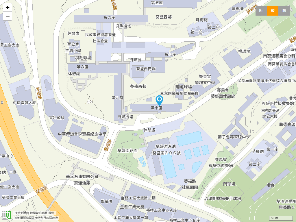 學校位置:葵青區 › 新界葵盛葵盛西邨10座地下。學校地圖。