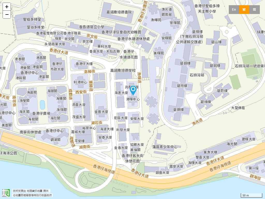 學校位置:南區 › 香港香港仔漁暉道十八號港暉中心高層地下1-2號。學校地圖。
