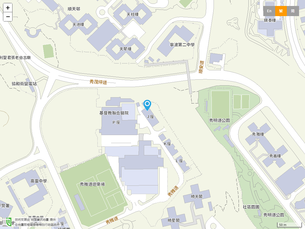 學校位置:觀塘區 › 九龍觀塘協和街130號基督教聯合醫院J座(陳國本大樓)1樓。學校地圖。