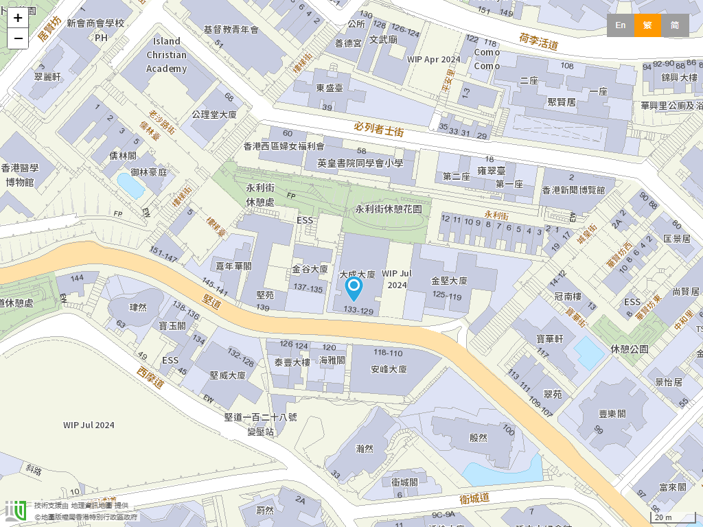 學校位置:中西區 › 香港中環堅道129-133號地庫一至三層。學校地圖。