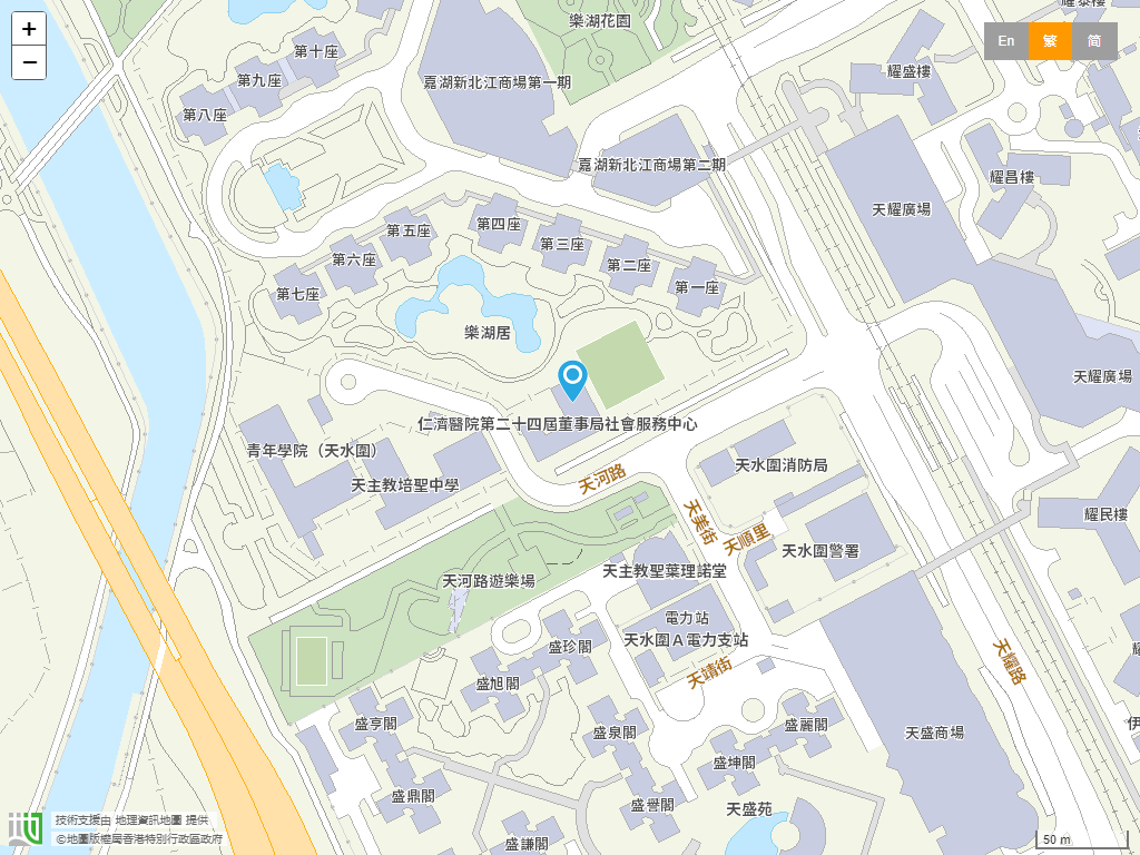 學校位置:元朗區 › 新界元朗天水圍天河路6號仁濟醫院第24屆董事局社會服務中心地下。學校地圖。