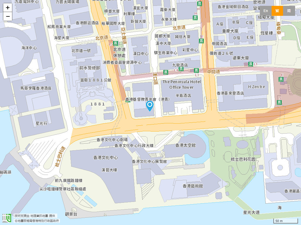 學校位置:油尖旺區 › 九龍尖沙咀梳士巴利道41號香港基督教青年會2樓。學校地圖。