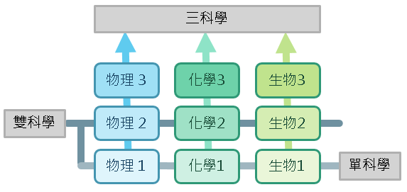 - 單科學(Single Science) —— 屬 1 個學科(Single Award),即只修讀核心科學(Core Science),它涵蓋了物理學、化學和生物學,每個範疇只涉獵較少內容。