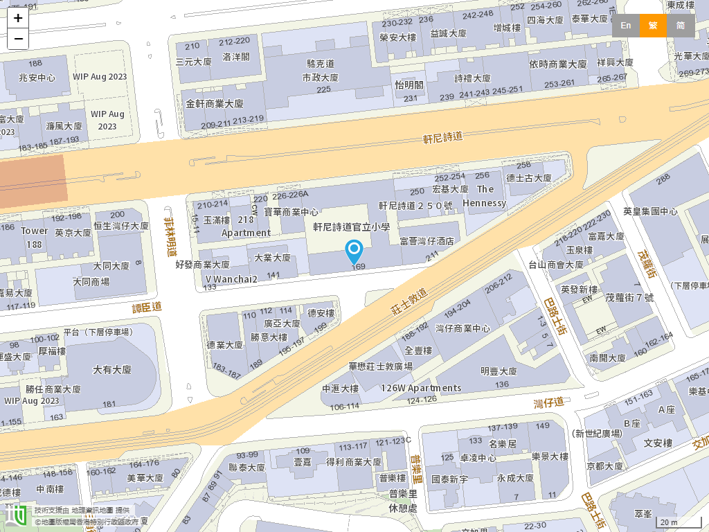 學校位置:灣仔區 › 香港灣仔譚臣道169號。學校地圖。