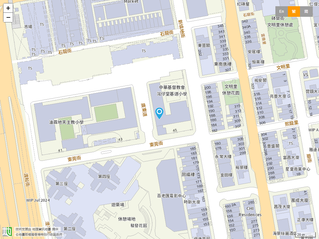 學校位置:油尖旺區 › 九龍油麻地東莞街45號。學校地圖。