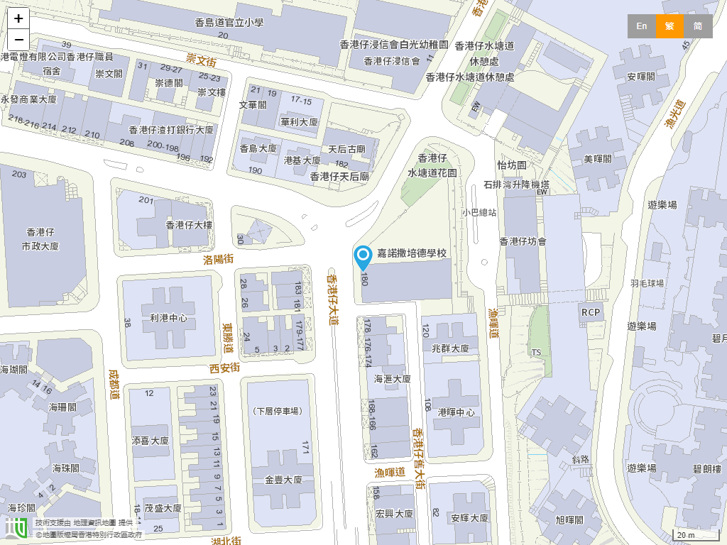 學校位置:南區 › 香港香港仔大道180號。學校地圖。