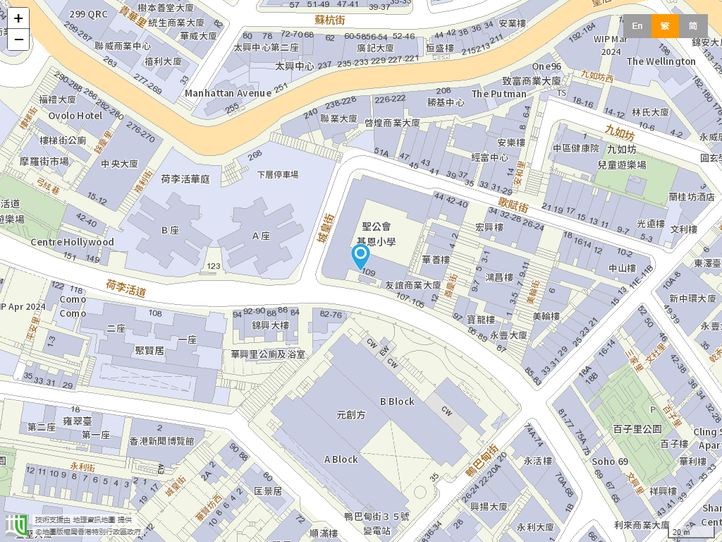 學校位置:中西區 › 香港中環荷李活道109號。學校地圖。
