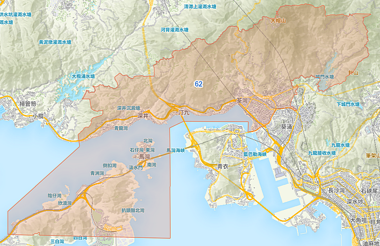 校網 62 的 涵蓋地區:荃灣、老圍、柴灣角、川龍、汀九、油柑頭、深井、青龍頭、馬灣、大嶼山東北、福來邨、祈德尊新邨、荃錦中心、荃灣廣場、翠豐臺、荃灣中心、荃景花園、荃威花園、錦豐園、荃德花園、麗城花園、翠濤閣、灣景花園、麗都花園、海韻花園、浪翠園、豪景花園、愉景新城、恒麗苑、石圍角邨、象山邨、綠楊新邨、荃灣花園、荃昌中心、荃豐中心、華都中心、富華中心、怡景園、荃灣城市廣場、海濱花園、東亞花園、富麗花園、海灣花園、名逸居、寶雲匯、朗逸峰、爵悅庭、萬景峰、荃新天地、縉庭山、韻濤居、碧堤半島、縉皇居、寶石大廈、白田壩村、光板田村、木棉下村、西樓角村、海壩村、三棟屋村、咸田村、楊屋村、河貝村、關門口村、馬閃排村、芙蓉山、環宇海灣、尚翠苑、柏傲灣、海之戀。