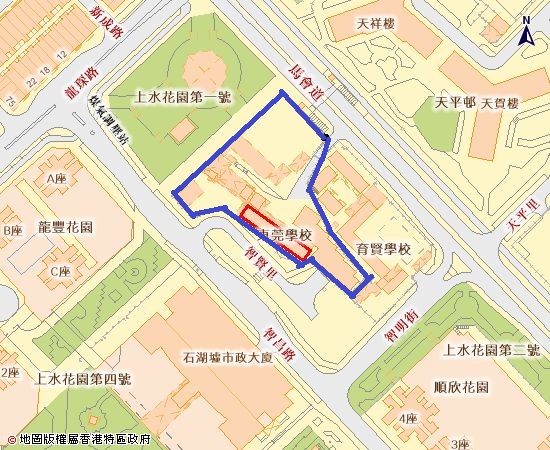 學校位置:北區 › 新界上水馬會道。學校地圖。