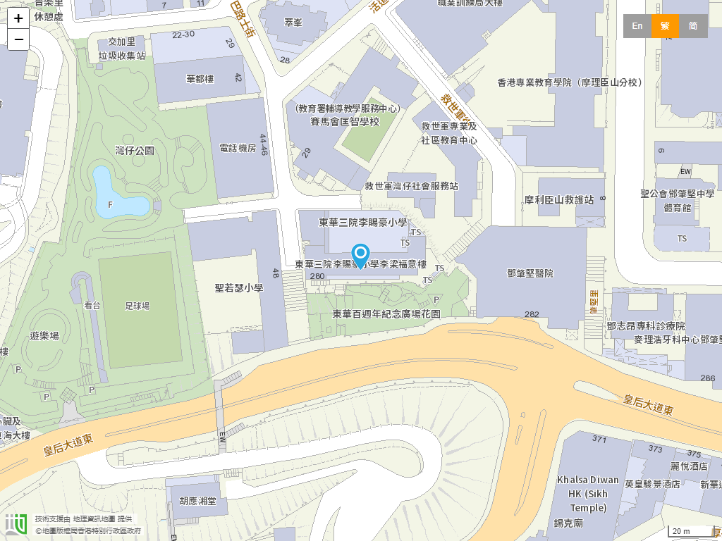 學校位置:灣仔區 › 香港灣仔皇后大道東280號。學校地圖。