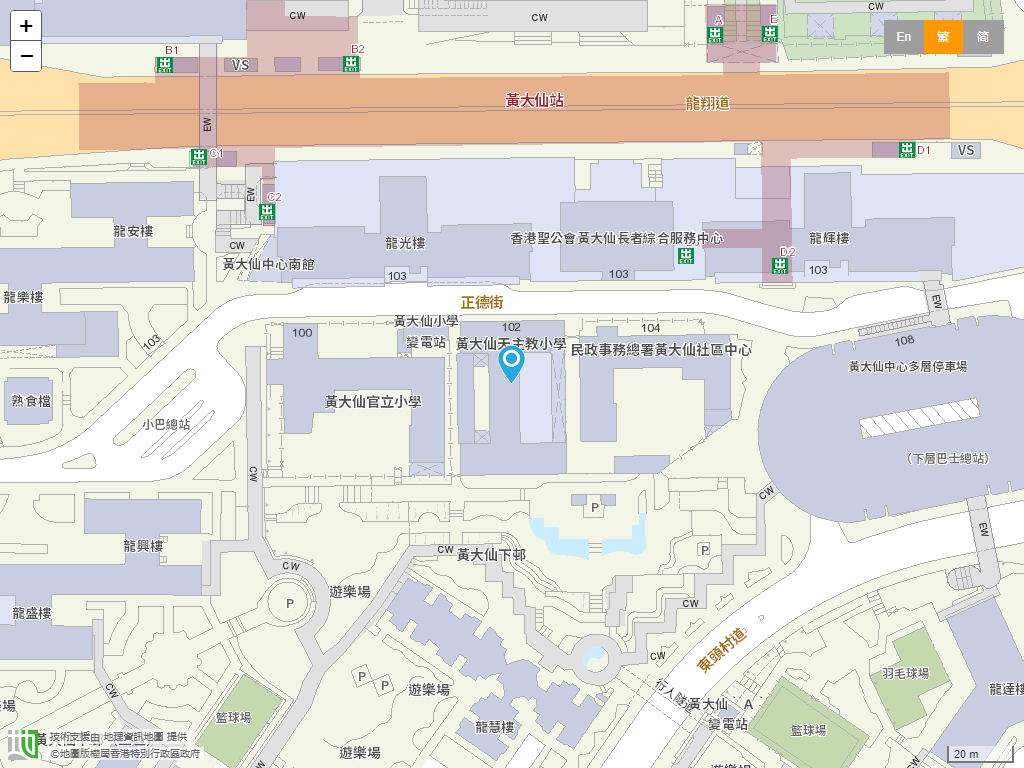 學校位置:黃大仙區 › 九龍黃大仙正德街102號。學校地圖。
