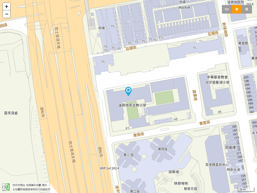 學校位置:油尖旺區 › 九龍油蔴地東莞街41號。學校地圖。