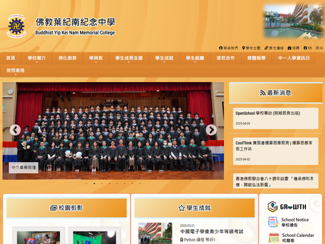 關於這頁:這裡是由「升學天地」網站製作,匯集及陳述關於佛教葉紀南紀念中學的資訊。這裡並不是該校的官方網站,如發現這網頁有任何不準確的地方或有改善之處,請讓我們知道。學校報導及相關影片,部分由搜索器自動提供,因此內容可能跟學校不太相關。如果想移除某些連結,請把詳情電郵到:schooland@itn.com.hk 或使用這表格:回報問題。