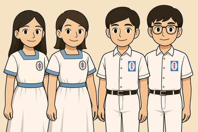 安柱中學夏季校服,由 AI 繪製。歡迎任何人士提供更好的校服插圖。