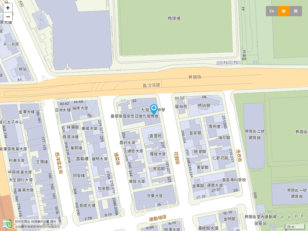 學校位置:油尖旺區 › 九龍旺角界限街52號。學校地圖。