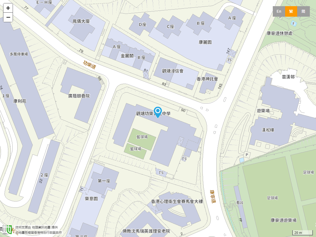 學校位置:觀塘區 › 九龍觀塘功樂道90號。學校地圖。