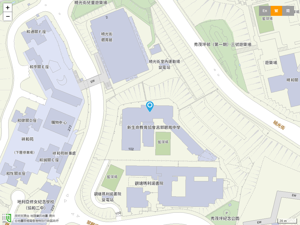 學校位置:觀塘區 › 九龍觀塘翠屏道102號。學校地圖。