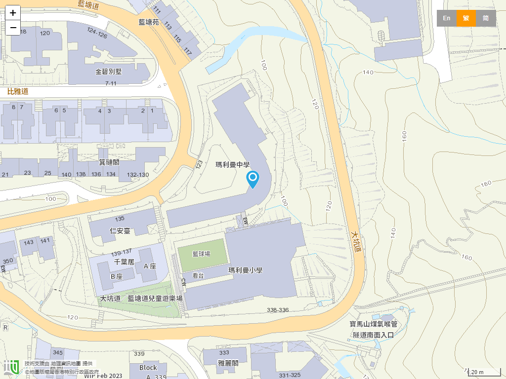 學校位置:灣仔區 › 香港跑馬地藍塘道123號。學校地圖。