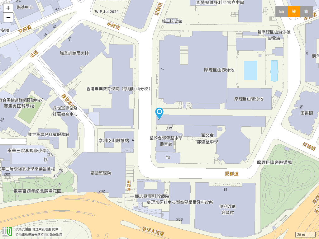 學校位置:灣仔區 › 香港灣仔愛群道9號。學校地圖。