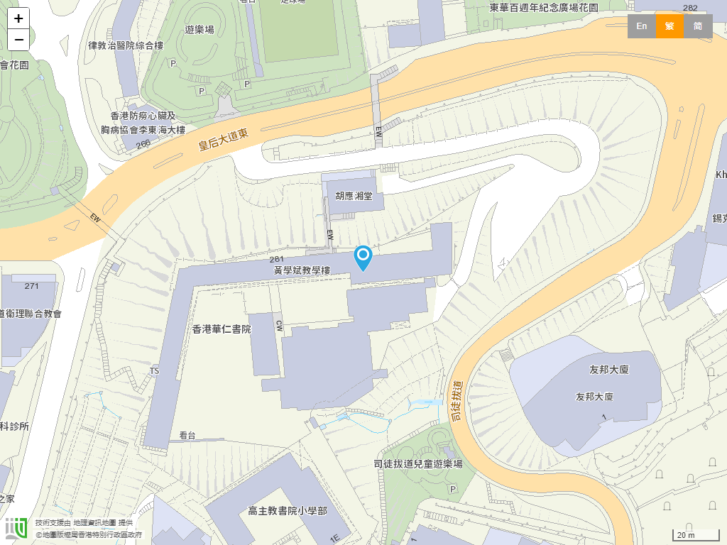 學校位置:灣仔區 › 香港灣仔皇后大道東281號。學校地圖。
